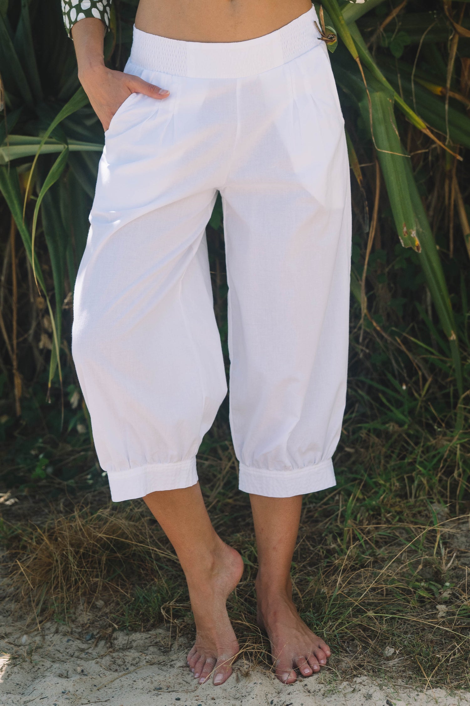 Relaxed Summer styling is the signature of Taj Pant... a cotton pant to style back with your Summer tops and Tee's for on the go summer styling. Shown here with Uma Shirt Olive Spot.
